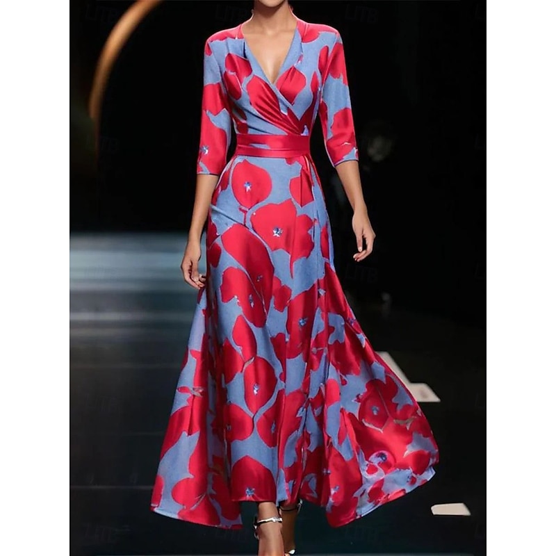 Women’s Maxi Dress Casual Dress Swing Dress A Line Dress Casual Daily Regular Fit Floral 3/4 Length Sleeve V Neck White Champagne Red Spring Fall 2026