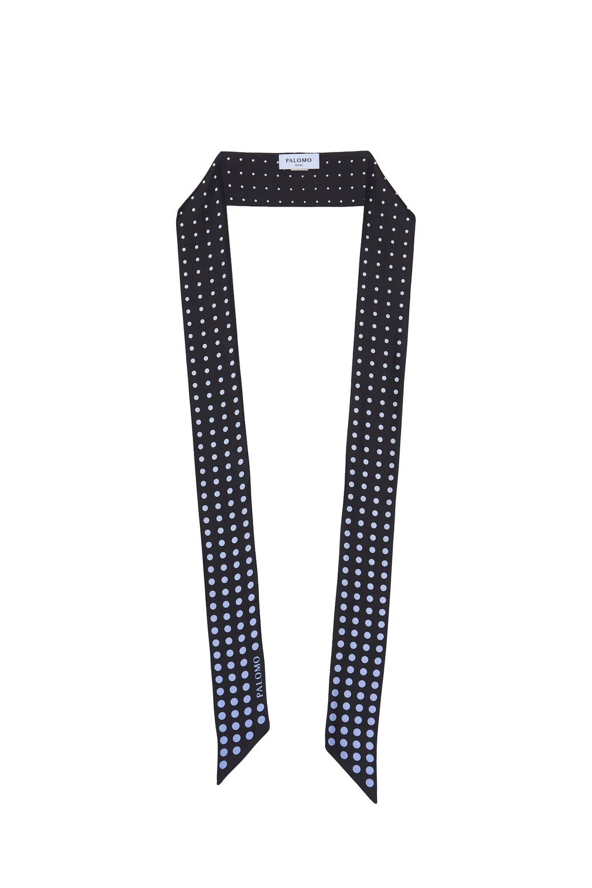 Part of the Holiday Resort 2026 โ€œCocoonโ€ collection, theย Blue Printed Twilly Scarfย blend classic scarfs with signature detailing. Color: Black & Blue Details: Faded dots design Fabric: 100% Silk Made in Spain