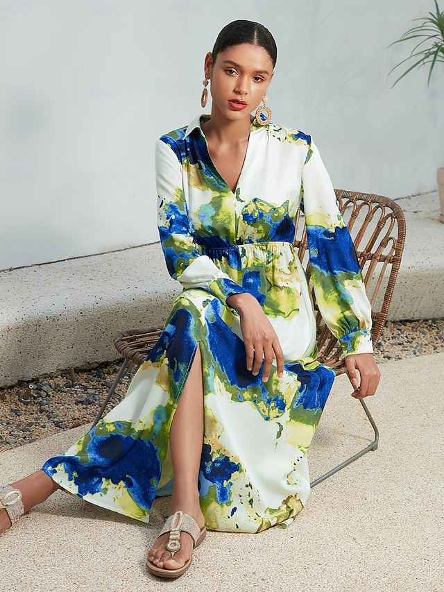 $89.00 โ€“ Vacation Abstract Gradient Print Elastic Waist Satin Maxi Dress 2026. Shop for cheap Maxi Dresses online. Buy at ador.com on sale today!